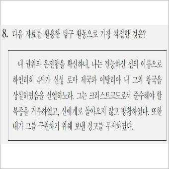 8번 문항에서는 다음 자료를 활용한 탐구 활동으로 가장 적절한 것은? 이라고 출제되었습니다. 지문의 내용을 읽고 이글에 대한 주제 등을 찾으면 되겠습니다.
